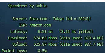 从speedtest本地测速能看到端口速率大概是1Gbps