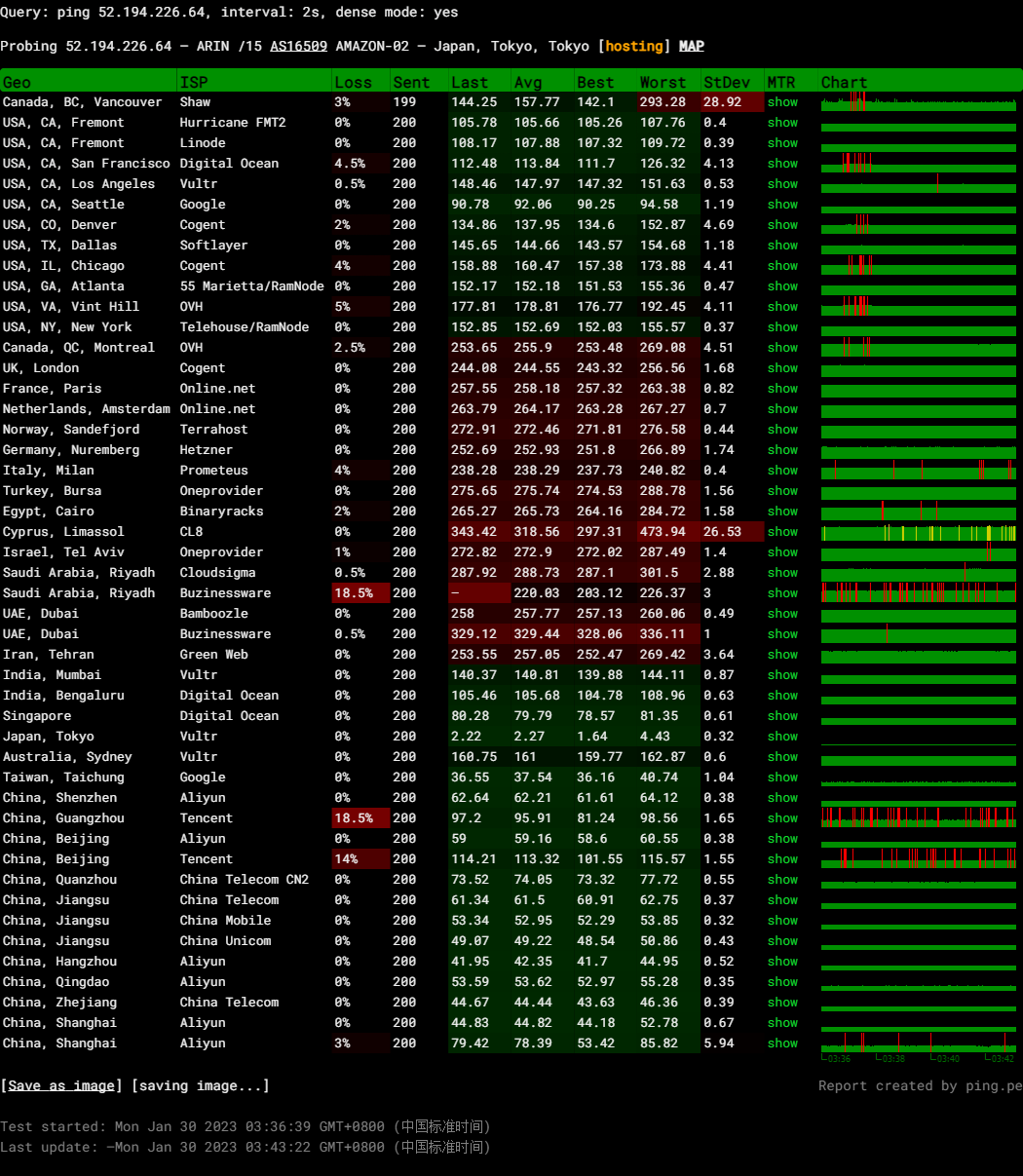 Lightsail-光帆 日本区域网络测试