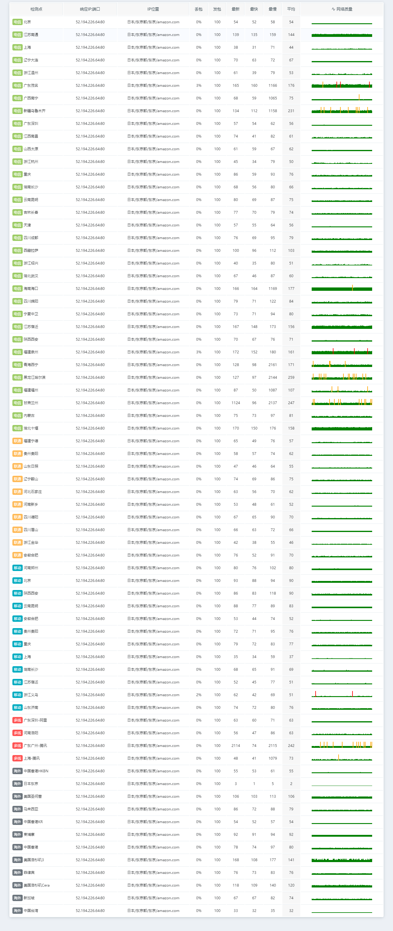 总的来说这日本的线路真的只能以能用的程度来描述,线路各种绕来绕去。速度的话从三网测试来看,只有移动还算好一点。如果不是有地区需求的话,建议还是用其他区域吧。