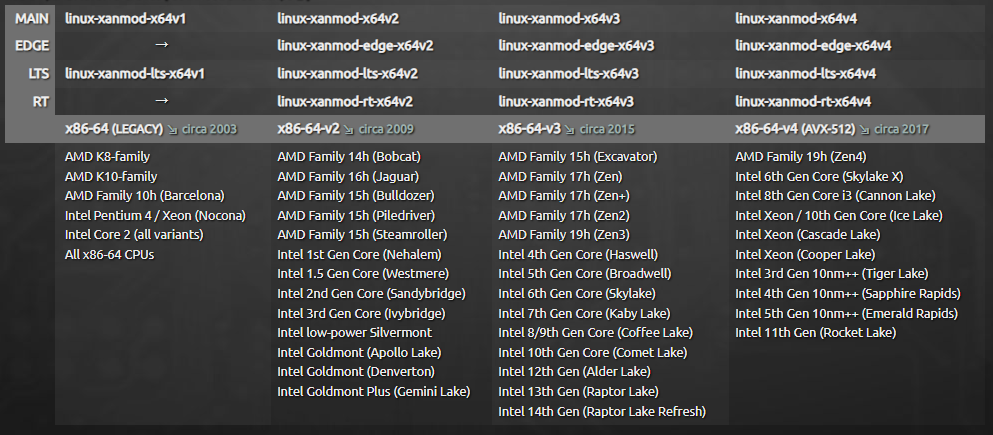 目前能安装V3版本的内核貌似并不算多,一般都可能是用XanMod这个发行内核相较于其他版本内核的优缺点网上也是一大堆,我就贴一下XanMod官网的介绍