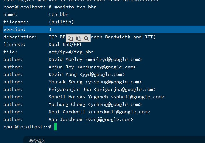 如何在运行 modinfo tcp_bbr 时看到 "modinfo: ERROR: Module tcp_bbr not found" 错误,这可能是因为 BBR 不再作为一个单独的内核模块存在,而是直接编译进内核了。无法单独查看信息。但已经是BBRv3了